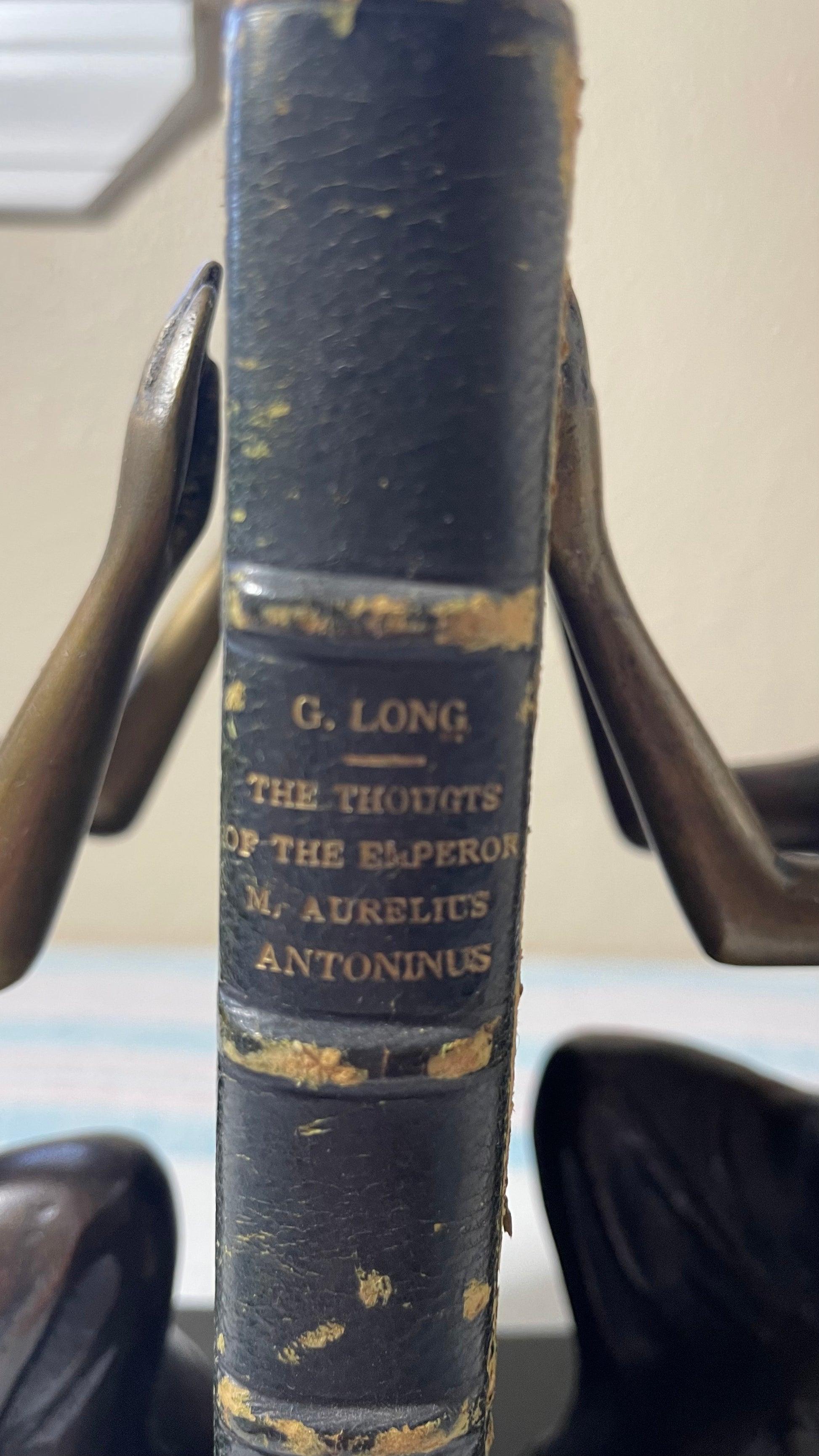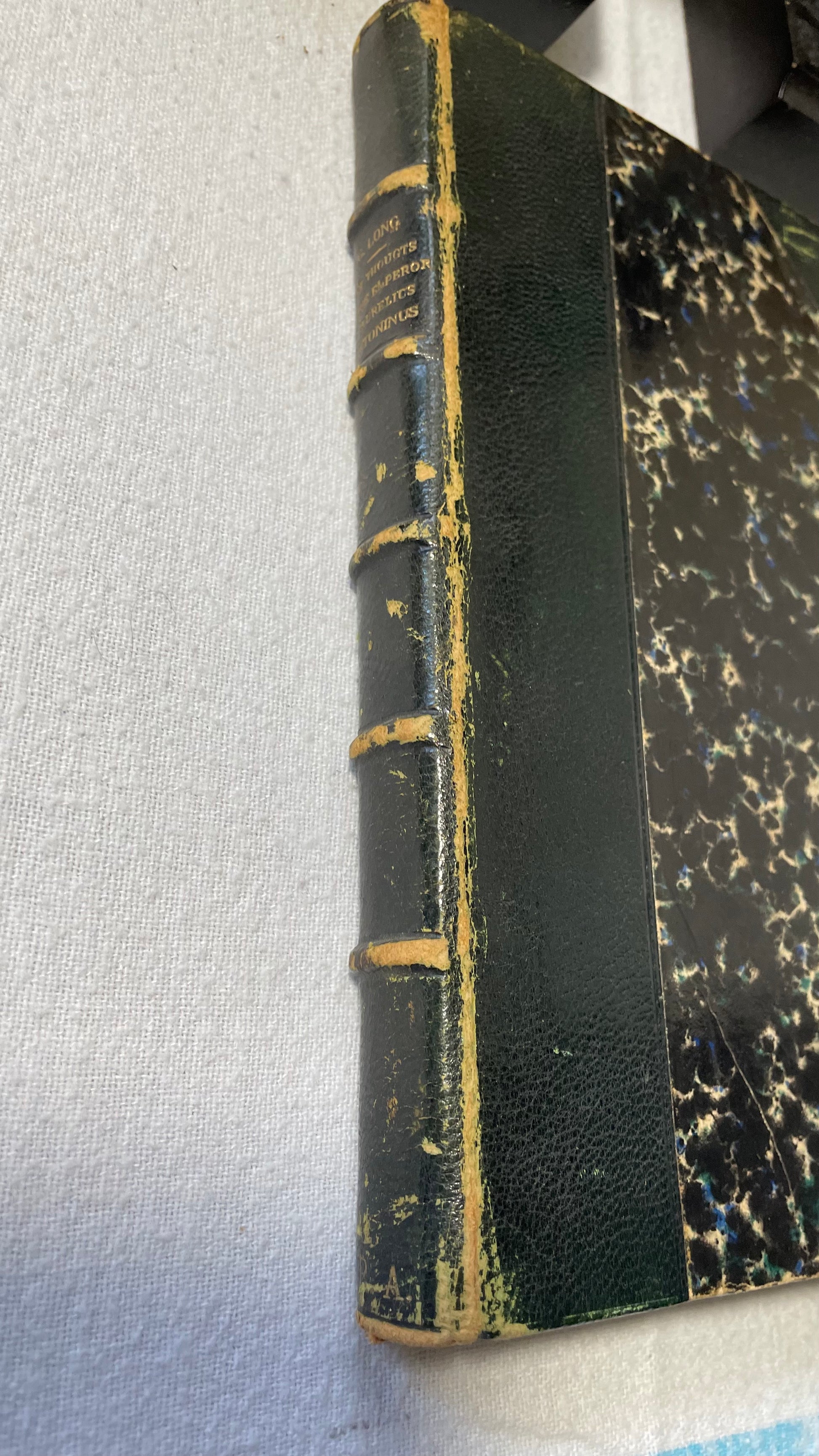1881. Second edition of the famed and premier George Long translation into English. Rebound with leather binding and edges plus gilt lettering in Paris circa 1902 for previous owner Payne Adams whose initials are gilded into the bottom of the leather binding P.A. Some loose pages, mostly the blank pages at front. title page and text in tact. Good.