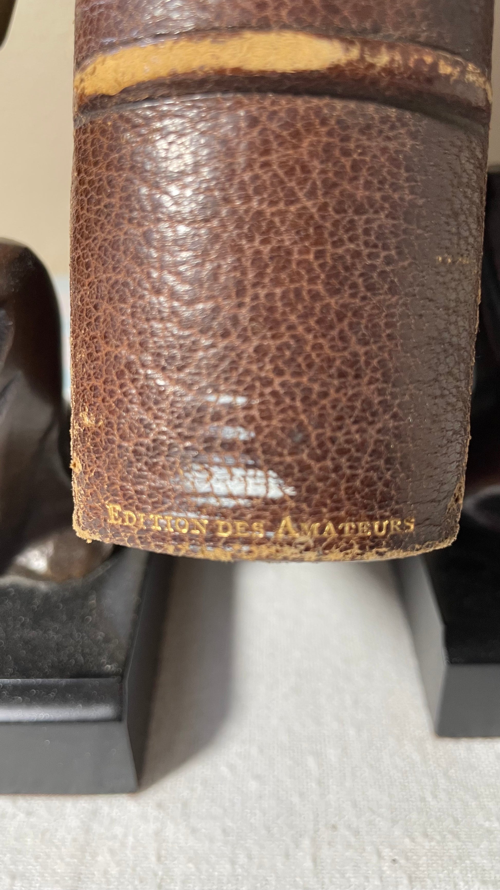 Text and prints very good overall. Some water staining around the edges of some pages but the pages have wide borders and few if any are compromised. Bound in original leather with some edge wear, minor chipping, and toning. Occasional foxing throughout, with a few loose pages and tissue guards, but all text blocks remain intact and tightly bound. Some wear to covers and spine areas commensurate with age. A rare and elegant set, seldom found complete.