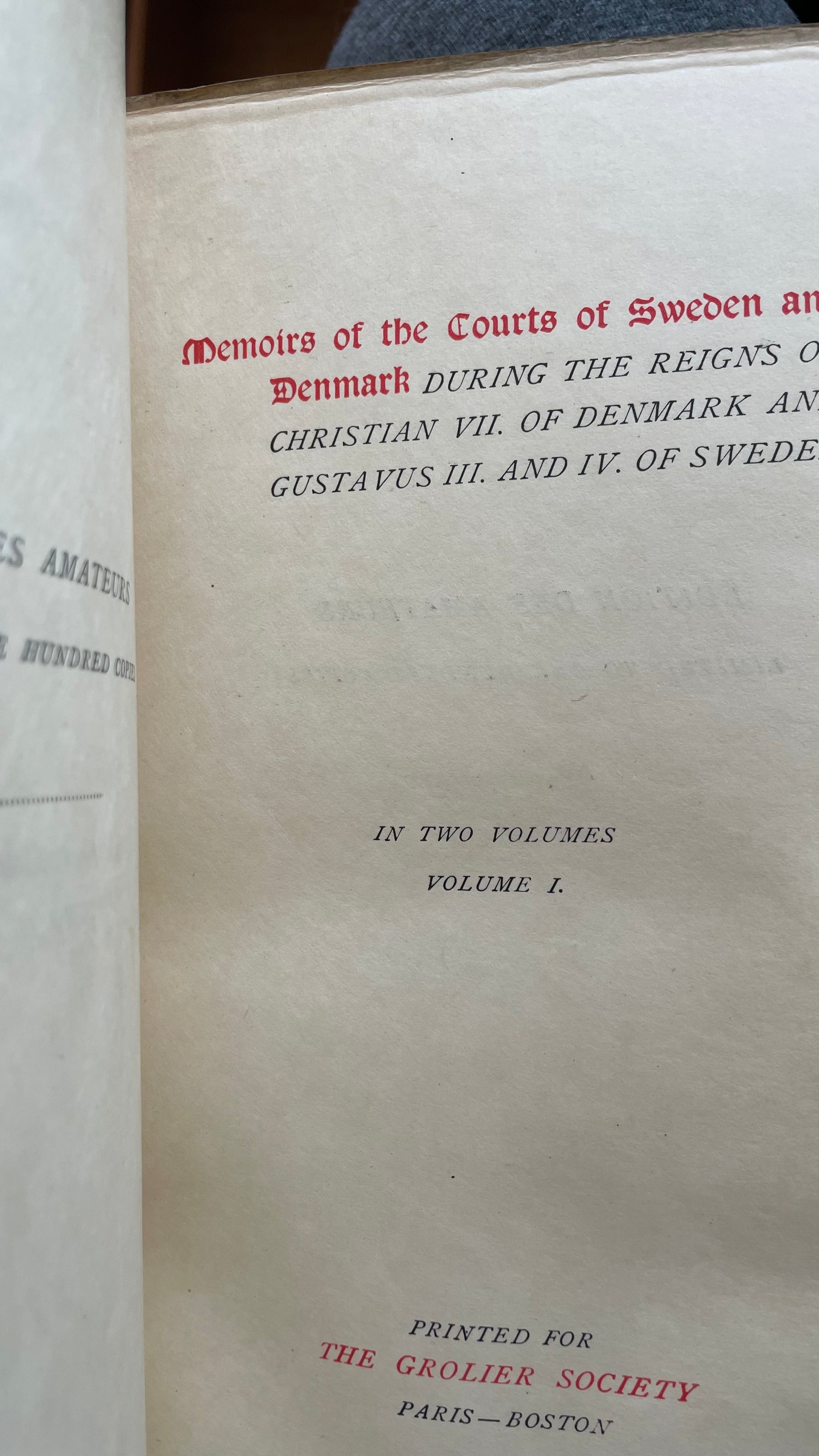 A lavishly produced and highly limited edition set, this Édition des Amateurs series features court memoirs of notable European men and women of the court. Offering intimate, first-person insight into the royal courts of France, Sweden, Russia, and beyond. Printed in an edition of only 100 copies, this set is finely bound and illustrated, designed for the bibliophile collector.